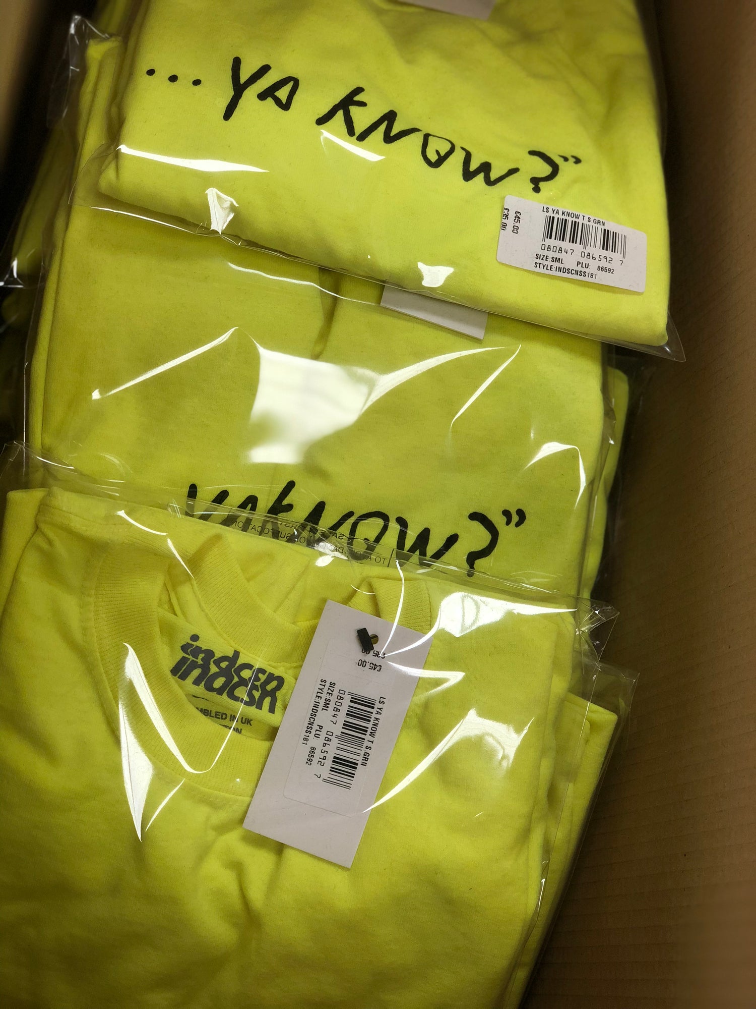 We also offer a garment description sticker which could state garment colour, print name and/or print colours. We know that some clients can have multiple coloured prints in the same design or you may only have prints on the back. We can also offer a printed bag service!